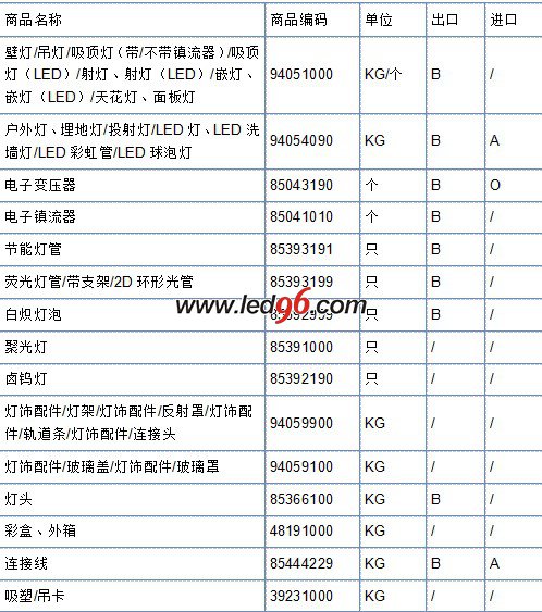 2017年1月1日生效。在新版的《協(xié)調(diào)制度》目錄中,第八十五章,注釋三十九,增加了新的子目錄,增列了發(fā)光二極管( LED )燈泡(管),其海關(guān)編碼為85395000。 見許多朋友詢問相關(guān) LED 海關(guān)編碼 ,整合見下: 1 、 LED 燈具 2 、傳統(tǒng)光源 3 、相關(guān)包裝資料 4 、電子零